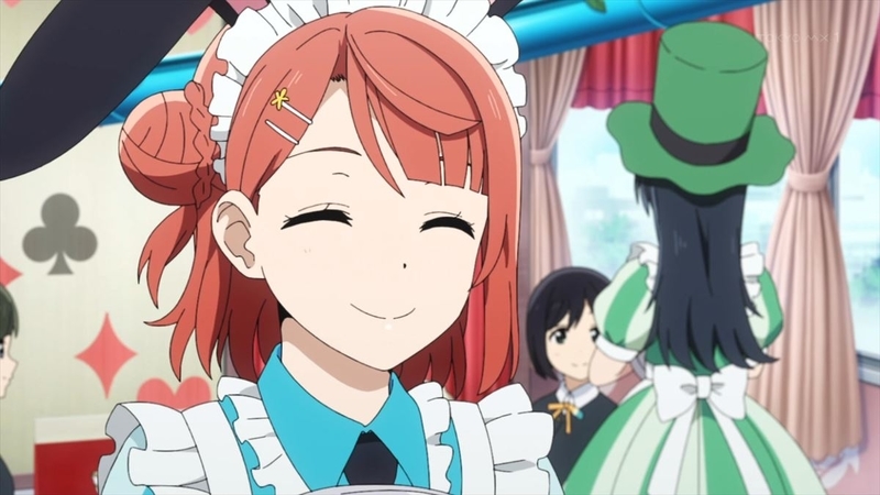 やりたいことをやっている。グリフィンドールに10点加点です。何この歩夢。可愛すぎでしょ。あとDream with YouのMVも不思議の国のアリスがモチーフになっていたように、こういうロリータファッションは歩夢のシンプルな「好き」でもあるので、名采配と言わざるを得ません。でも歩夢がケーキ出した瞬間にエマと彼方が異口同音に「歩夢ちゃん、カワイイ~!」ってコーレスみたいな事言うので、褒めちぎる代わりにケーキ奢ってもらってるみたいに見えてちょっとシュールでしたね。まぁ、それはどうでもいいんですが。