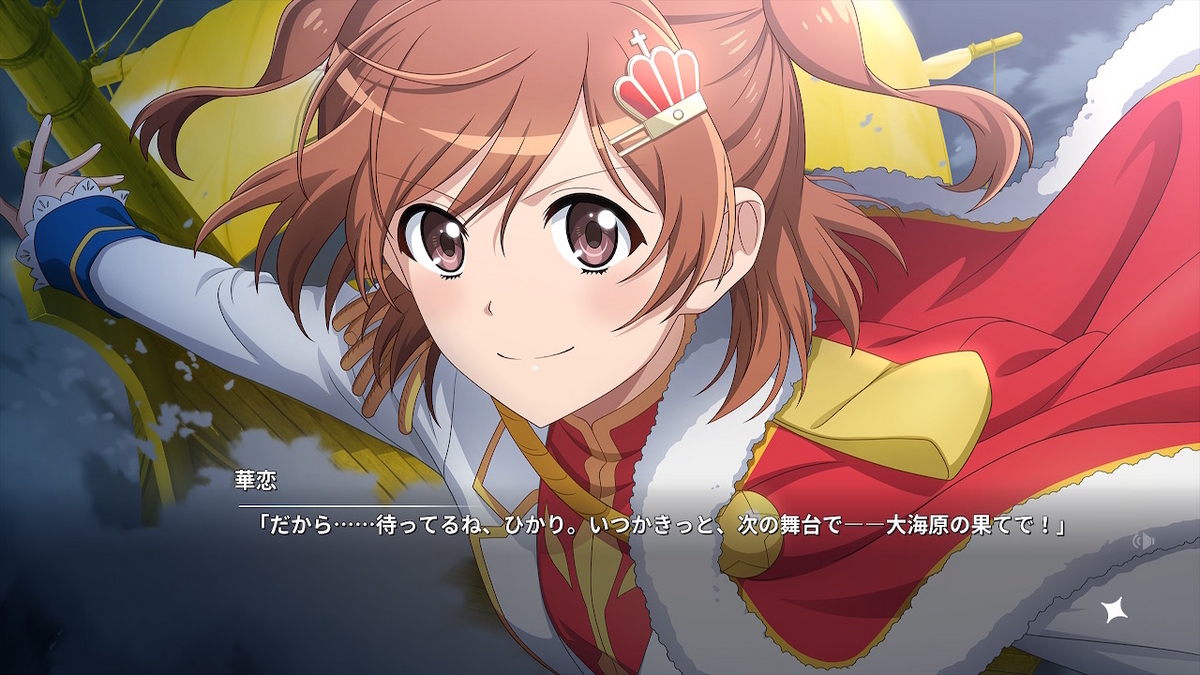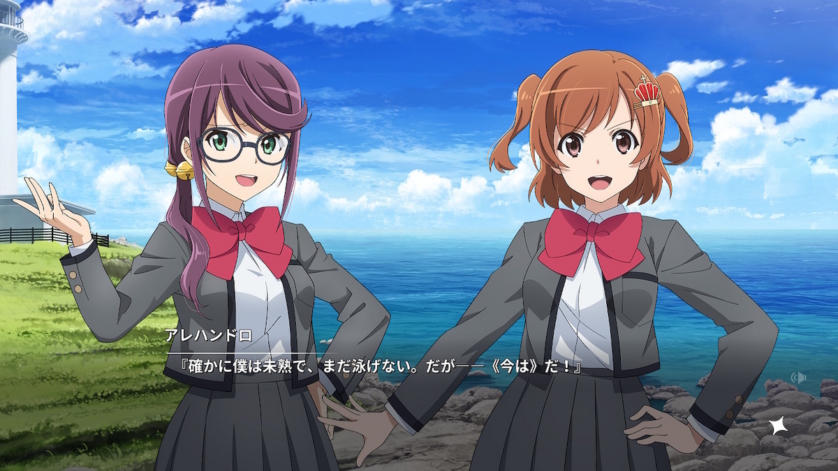 ……ひだまりPがこの展開予測できなかったのは、キャバレロ卿の穴兄弟っているじゃないですか。サルバトーレとミゲルのことなんですけど、これまでの2篇ではキャバレロ号の船乗りコンビが純那&ななと香子&双葉だったんですよね。今回のミゲル役は真矢なのでじゃあやっぱりクロちゃんがサルバトーレなんやなと勝手にメタ読みしてました。まぁ、それはともかく。