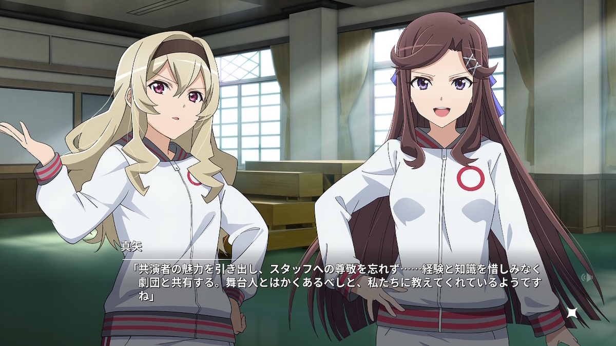 ということで本作は、《遥かなるエルドラド》という演目をテーマにオーディションで選ばれた役をどう演じるかで壁にぶつかるA組「俳優育成科」と、誰を主役に選び、どのように舞台を創り上げるかを葛藤するB組「舞台創造科」のそれぞれの視点で進んでいくビジュアルノベルゲームとなっています。