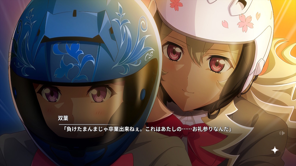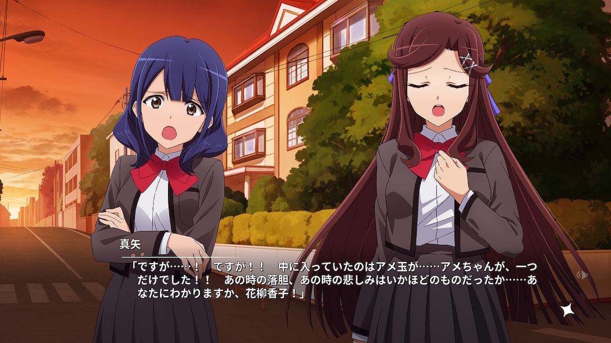 香子・真矢ルートはお互いに「追われる立場にいる人間」という共通点を持ち、そして卒業後はもしかすると同じ舞台にはもう立つことがないかもしれない2人の間にある友情ともまた違った確執のようなものがあって、主演2人の関係性という点では一番惹かれるものがありましたね。